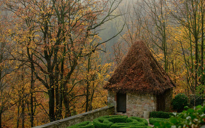 , Спасибо, фрагмент старинного парка средневекового замка Ксенж, Польша, ноябрь 2018 г.