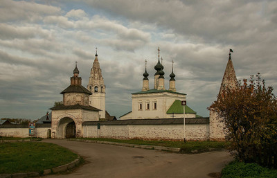 Вика пишет- "В первой половине XVIII века вокруг монастыря была сооружена невысокая ограда, украшенная декоративными башенками со стилизацией под оборонительные башни."