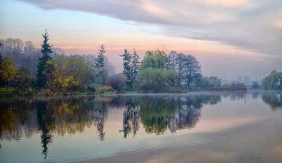 Осень.Рассвет.В воде отражается увядающая природа.И тишина....