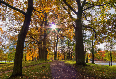 В зеркальном пруду отражается осень