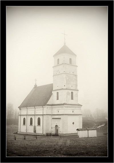 Заславье.. А видели старый пошарпанный костел недалеко от башни? Он в тумане весьма неплох