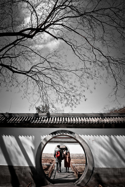 Эта конструкция пекинская, и такие проходы традиционны в китайских парках, называется она -Лунные ворота. В Китае очень почитают небо и луну. Считается, что проходя через них, человек очищается от дурных мыслей и намерений и встречается с хозяевами дома "чистым" и обновленным. Вот)