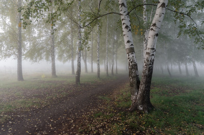 Туман в березовой роще