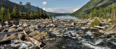 Алтай. Шумы. Вода перетекает в Первое Мультинское озеро.