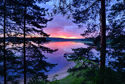 Озеро,сосны,заря.