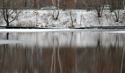 В парке-залив замерзает