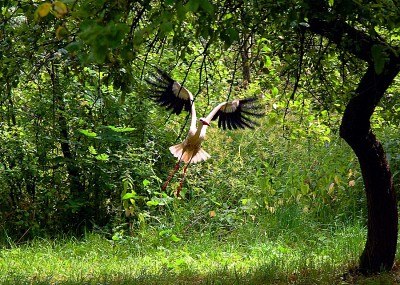 аист в саду