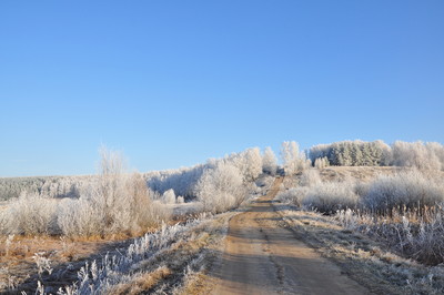 Иней лёг на деревья и траву, преобразив всё вокруг.