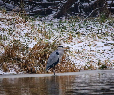 пока есть корм пока реки не скованы льдом - на берегу Буга стоит серая цапля