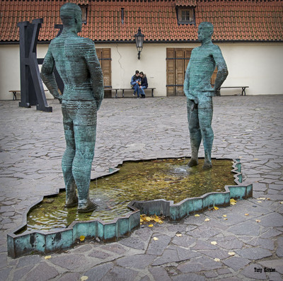 Скульптурная композиция у музея Кафки. Прага, Чехия.