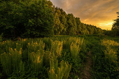 Здорово подсвечивается папоротник лучами заходящего солнца!