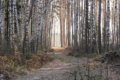 16 ноября. Ещё полмесяца до зимы, и на почве только белеет иней. Погода солнечная. Ещё немного и выпадет снег. Восточное Подмосковье, около озера Манёнок 1-ый в районе д. Давыдово.