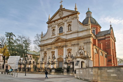 Костёл Святых Петра и Павла в Кракове Костёл Святых Петра и Павла Церковь является первым сооружением на территории Кракова, возведенным в барочном стиле. Она была построена по проекту итальянского архитектора Д. де Росси в конце XVI столетия для католического Ордена иезуитов. После расформирования братства в XVIII веке костёл несколько раз менял хозяев и в итоге был передан Цистерцианскому аббатству. С 1820 года он относится к краковскому приходу Всех Святых. |