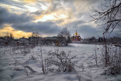 Начало декабря.Серая,тусклая погода.Снег.И ближе к вечеру немного прояснились облака...