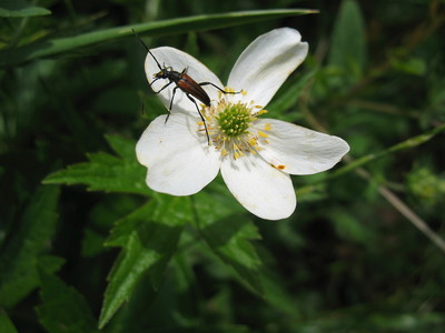 Жучок усатый и анемона