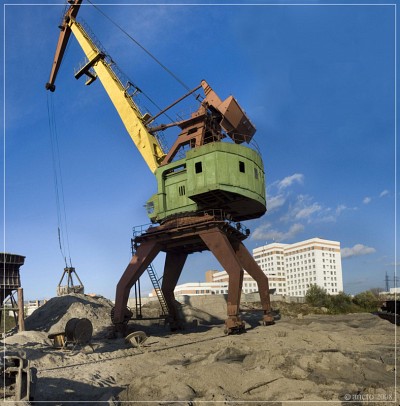 Жираф Одна из первых попыток создания "композитных" кадров, склейка 5x5 кадров. Когда-то этиих кранов было два, потом один унесло ветром. После этого я пошёл и сфотографировал тот, что остался, пока и он не улетел. |