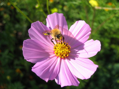 Шмель увлёкся опылением космеи.