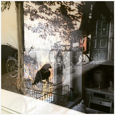 Попугай отражается в Зеленограде на кухне зимой 2018