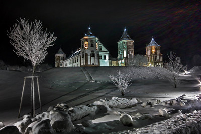 Фото ночной зимний замок Радзивилов в г/п Мир