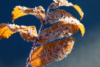 Иней на осенних листьях
