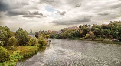 Украина,Винница. Осень.Вид с Киевского моста на реку Южный Буг и церковь великомученицы Ксении Петербуржской