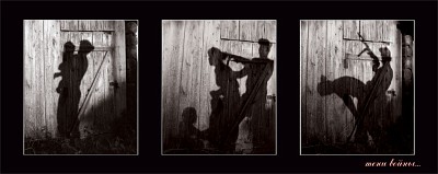на третей поза женщины на мой взгляд не естественная... а так работа хорошая цепляет ( и причем сильно)... но формат не фотоклубовский это уж точно))) надпись "тени войны" я бы тоже убрал...