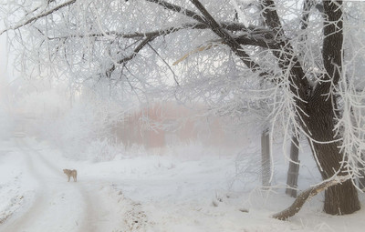 Изумительно! При том, что кадров с туманами немало на этих страницах и они всегда нравятся, но этот конкретный снимок поражает, кроме всего прочего, утончённым цветом, проступающим сквозь туман и акцентом во взгляде собачки, обернувшейся на фотографа... Респект!