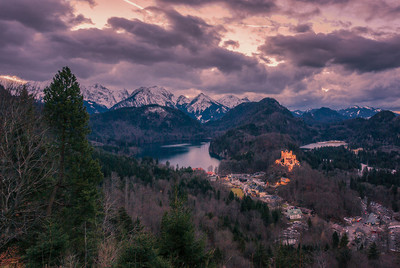 Зимний вечер в фамильном гнезде Виттельсбахов... Снимок сделан с высоты замка Нойшванштайн, старинный замок Хоэншвангау в вечернем освещении. Зима в Швангау, 5 км от Фюссена, Альпы, Верхняя Бавария. http://www.youtube.com/watch?v=7MGpFB_-fAY |