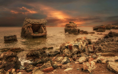 удачное сочетание палитры красок в кадре..руин,воды,неба..