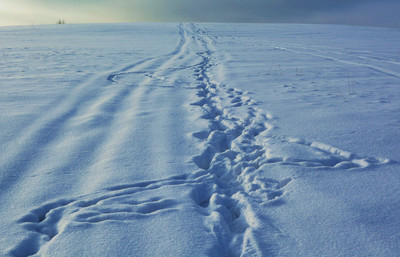 "На чистом и нетронутом снегу, следы ..." "На чистом и нетронутом снегу Следы, пересекаясь, в даль уходят. В какую неизвестную страну, В какую тайну нас они уводят? Кто здесь прошел и там исчез, в дали, Оставив след в искомканной постели ?..." В.Комина |