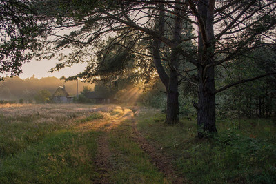 утро. сосны. туман