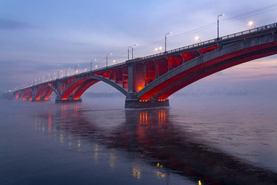 на Коммунальном мосту в г.Красноярске смонтировали подсветку, имеющую разные режимы работы и световые схемы.
