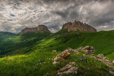Сергей Алтушкин В ожидании дождя Массив Чертовы ворота образуют гора Западный Ачешбок и гора Восточный Ачешбок, высотой 2486 метров и 2440 метров над уровнем моря соответственно.