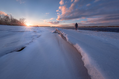 Мартовский закат на Волге. Андрей Олонцев в поиске фактуры.