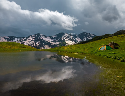 Палатка на берегу горного озера Люблю путешествовать, особенно в горы с палаткой. Тем более интересные места для съёмки часто находятся далеко от дороги (иногда полдня ходу). И больше всего, я наслаждаюсь живя в палатке, вдалеке от туристических маршрутов, в полном покое, гармонии с природой. Никакие фото и слова не передадут это ощущение полного счастья. Когда днём занимаюсь своими делами (или отдыхаю после фотосъёмки, или читаю книгу, или обедаю) и при этом вокруг величественная красота гор, отражающее в озере бездонное небо с белоснежными кучевыми облаками, весенние запахи альпийских лугов после дождя и тишина! Ко всему этому не привыкнуть, всё кажется – «не может быть». Бытовые моменты похода, только подчёркивает это ощущение – будто нахожусь в приключенческом фильме. Это важный момент для моего творчества, влияющий на моё видение мира, понимание Природы. Приглашаю насладиться путешествием и романтикой походной жизни в горах в фототуре «Сказочная Абхазия». Подробности здесь: https://www.facebook.com/groups/1755505914709044/(фейсбук) и https://vk.com/topic-69994899_38364547 (контакт). |