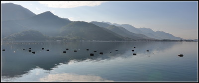 Устричная ферма на фоне не" черных" гор
