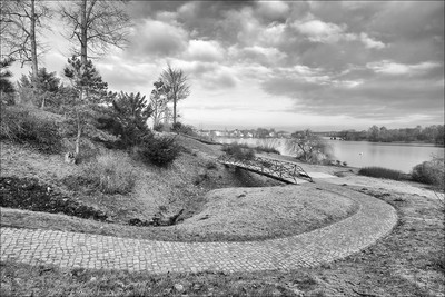 По аллеям парка Уголок парка Бабельсберг в Потсдаме. В свое время парк был признан одним из самых совершенных парков Европы. Вдали - мост Глиникербрюкке, соединяющий Потсдам и район Берлина Ванзее. Мост также известен под названием "шпионский мост". На нем происходил обмен арестованными шпионами между советскими и американскими спецслужбами. Так, 10 февраля 1962 года, Советский Союз выдал Соединенным Штатам сбитого над Свердловском американского лётчика Гэри Пауэрса в обмен на арестованного ФБР Рудольфа Абеля. В апреле 1964 года советский агент Конон Молодый был обменен на британского агента Гревилла Винна. |