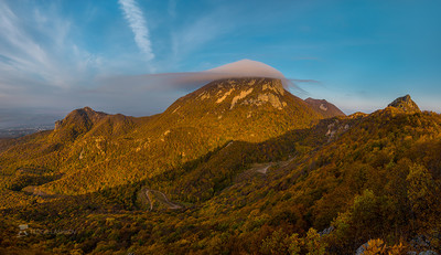 Гора Бештау в облачной шляпе Осенний рассвет. На вершине горы сформировалось вот такое причудливое облако. Государственный природный заказник краевого значения «Бештаугорский». Фотопроект «Открывая Ставрополье». Осень, 2018. |