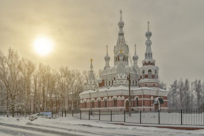 Никольский собор в Павловске в снегопад.