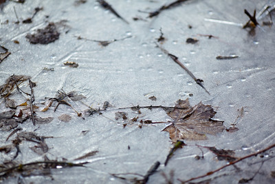 Листья под весенним льдом как письма из прошлого о будущем тепле, о новой листве .