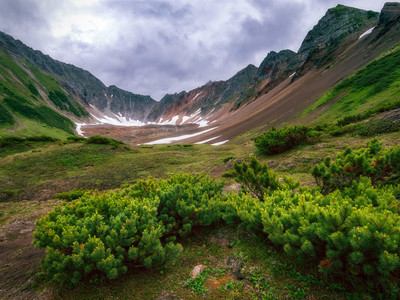 Один из кратеров древнего вулкана. Горный массив Вачкажец и г. Летняя Поперечная