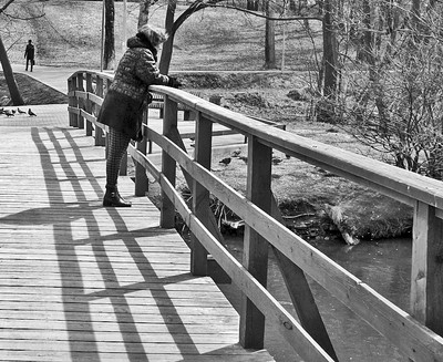 Отлично построен кадр! Нисходящая диагональ - дорожка - перила мостика - тени от перил. Расположение персонажей съемки....ну и название!