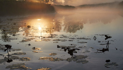 озеро,рассвет,туман