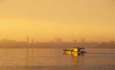 Волгоград.Вид с правого берега Волги на Красноармейский район и монумент имени В.И.Ленина.
