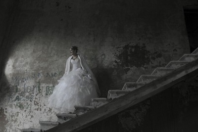 Платье красивое,накидка лишняя!Ну и надпись на стене не по сюжету,та что то про кролика!