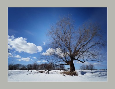 Лаконичный передний план подчеркнул графику остатков изгороди и дерева.