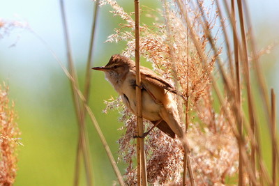Чаротаўка драздовая Самая крупная из наших камышевок, размером со скворца. Вся верхняя сторона тела, а также крылья, хвост и бока головы светло-бурые или рыжеватые, над глазом охристо-белая бровь. Нижняя сторона более светлая, буровато-белесая, брюшко светлое с охристым налетом по бокам, горло беловатое или почти белое. Клюв и ноги серовато-бурые. У молодых птиц грудь и брюшко более темные, охристо-бурые. |