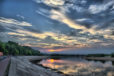 Впечатляющее небо, даже не очень сочетается с городской набережной.
