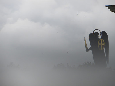 ...туманно и тревожно...птицы в полёте добавляют остроту ощущений - край фронтона вспарывает небо ... слева пространство - океан неизведанного... однако впечатляет...