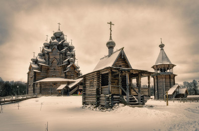 Воссозданная копия Покровской церкви постройки 1708 года, находившейся до 1963 года в Вытегорском погосте. Находится под Петербургом.